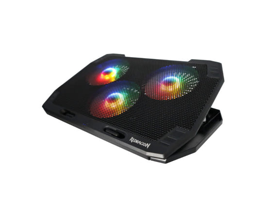 The GCP511 Ingrid Laptop Cooler cools up to 17 -inch Laptops, equipped with 3 Illuminated Fans, adjustable RGB light and an adjustable angle, this device fits all your laptop cooling needs!